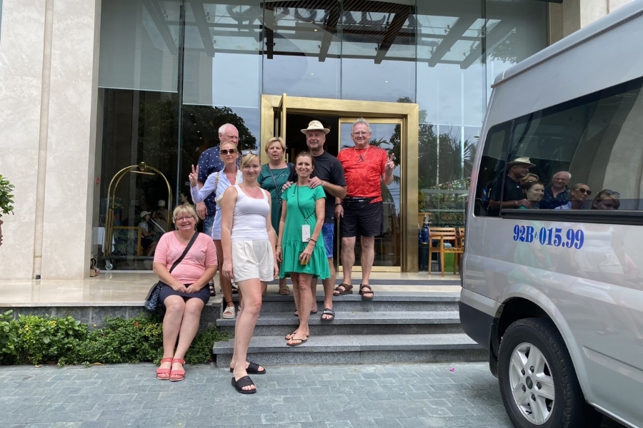 Along the way, visitors will admire the beautiful scenery of the Cau Hai Lagoon area through the car window. After arriving, our experienced driver will assist you in buying entrance tickets and receiving a detailed map of the national park.
